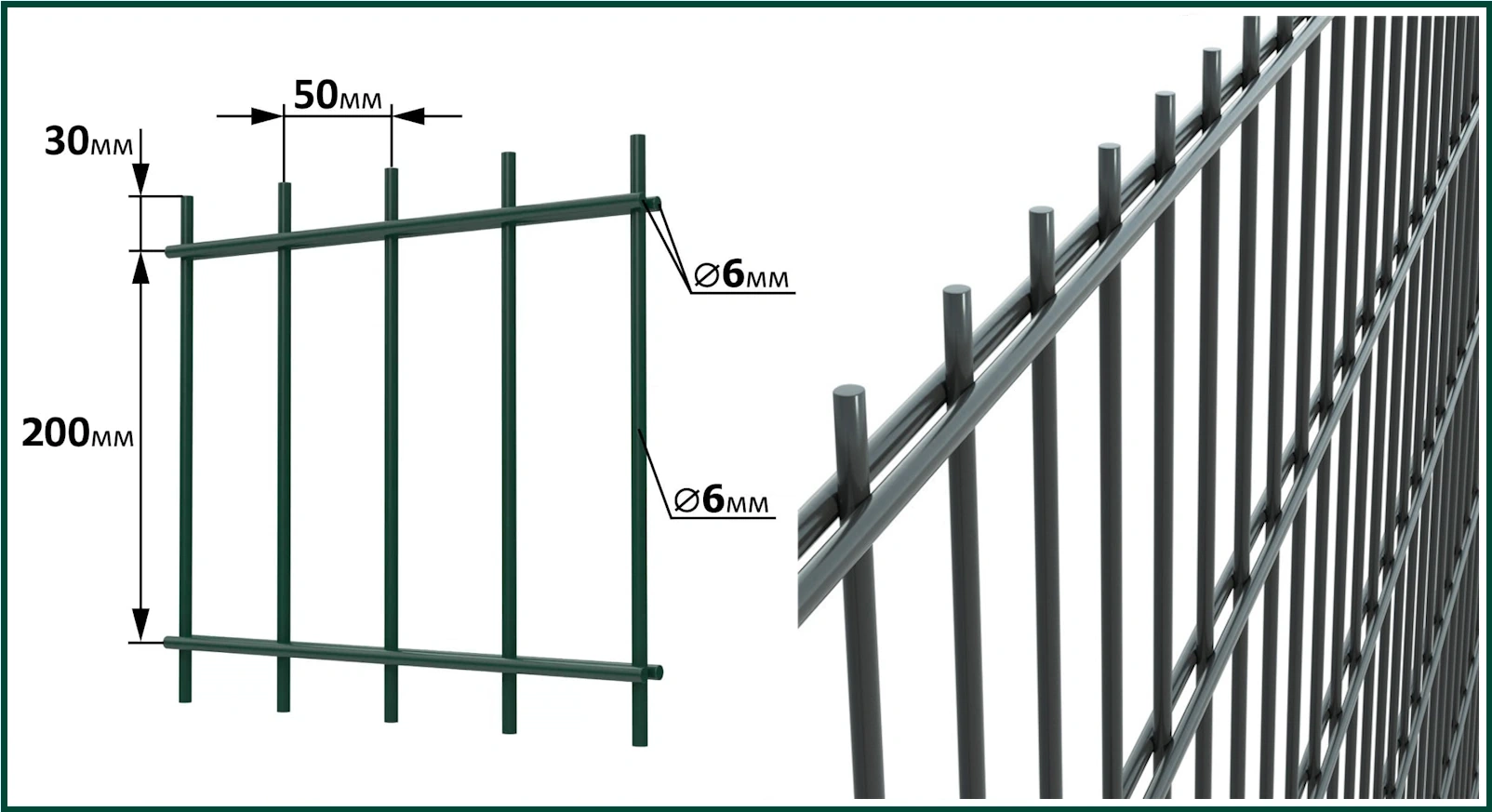 Существует еще и 2д сетка, все думают, что она дешевле, потому что 2 вместо 3, но нет. Панели 2д дороже, потому что там применяются прутки 6 мм расположенные горизонтально и 5 мм. вертикальные.